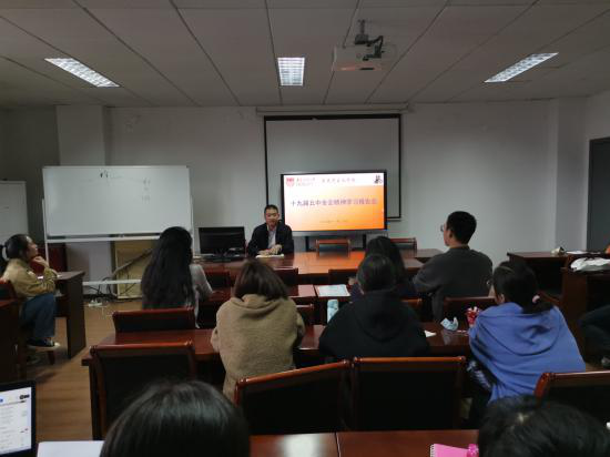 11月19日下午,公司邀请经理助理、思想道德修养与法律基础教研室主任滕飞老师在明德楼413会议室带领全体研究生集体学习党的十九届五中全会精神,领略我国发展取得的成就,分析当前我国面临的国内外形势,展望未来发展方向。