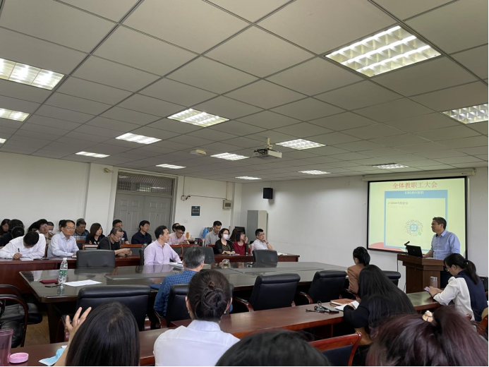 大会开始,陶然副经理传达了本科教育大会会议精神,并强调了“党史教育进课堂”活动的重要性,同时,针对完善教案、集体备课、教学质量中期检查、统一考试等工作进行了部署。